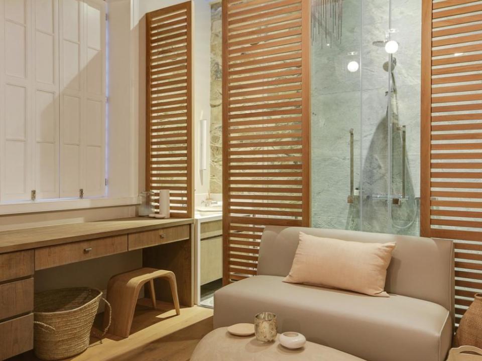 From here you can access the courtyard. The three bedrooms are comfortable and spacious. Two of them have King-size beds, while the third has twin beds. All are en-suite, have air-conditioning, TV’s and outdoor access onto the courtyard.