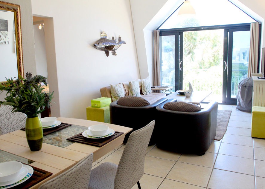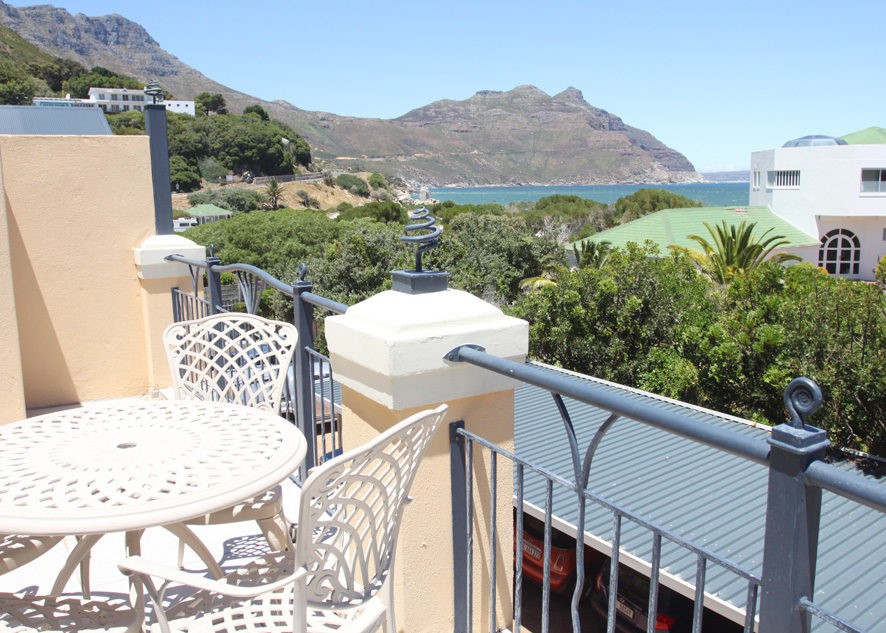 The sliding doors of the lounge open to the balcony with stunning views of the sea, beach and Chapman’s Peak Mountains