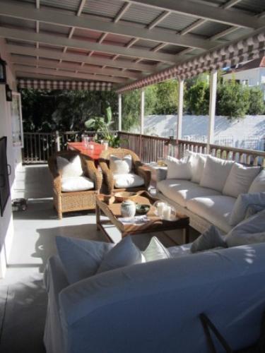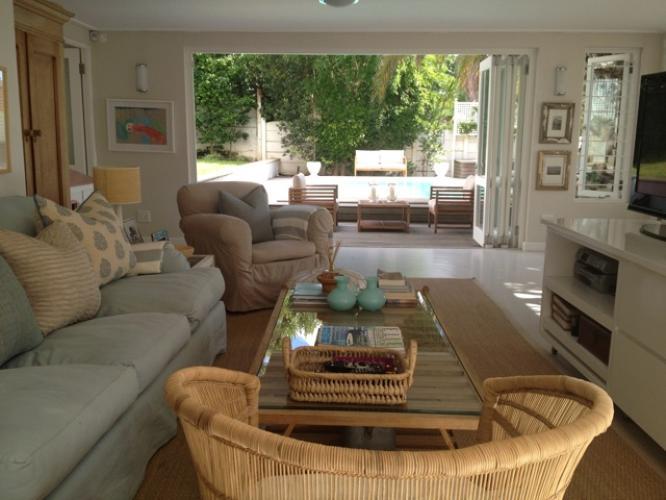 The kitchen lounge dining room are open-plan and folding/stacking doors lead out onto a covered verandah. We have lovely sea views from here and there is an 18 seater long table on the upstairs verandah. Downstairs consists of a spacious TV room with folding stacking doors leading onto pool deck and garden. The pool is solar heated as well. The 4th bedroom is en-suite and there is a small kitchen downstairs which is also the utility area.It would suit a family as it has a lovely open-plan relaxed beach house feel.