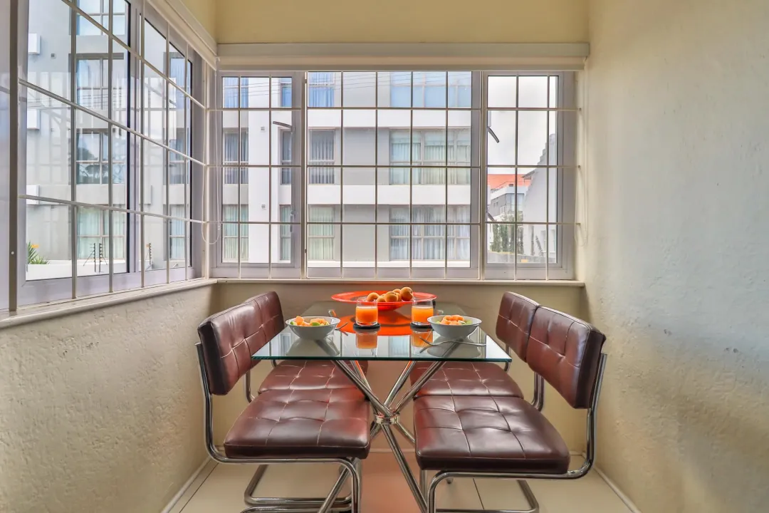 Eaton square is one of the older solid apartment buildings on the Green Point strip right opposite the Cape Town Stadium. The apartment has been renovated and opened up to ensure good flow throughout.