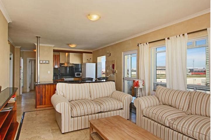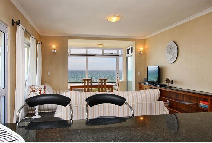 You will be forgiven for thinking you are sitting right on the beach when having breakfast on this balcony. With its uninterrupted view and close proximity, this balcony is straight from the movies. Enclosed to ensure you can enjoy the use of it all year round, it effortlessly flows into the elegant living area. The living area is furnished with a comfortable couch and leather tub chair. If you can tear yourself away from the ever changing panorama visible through the large window, you can explore the full satellite bouquet on the sizeable plasma television.