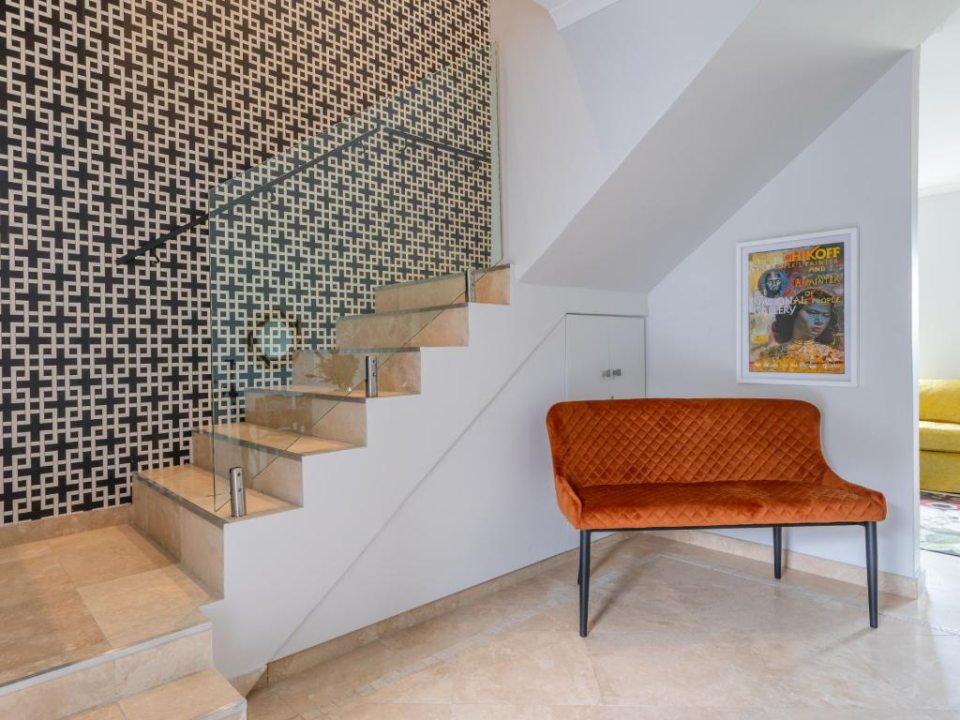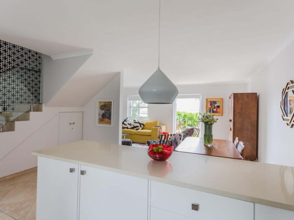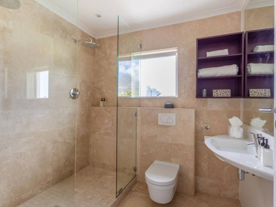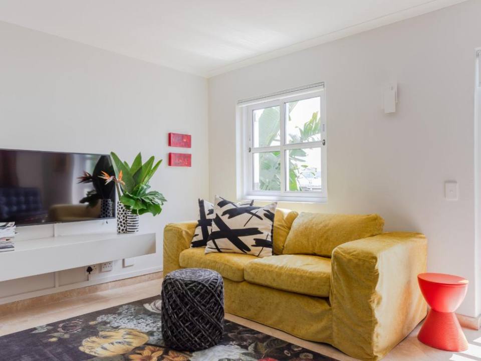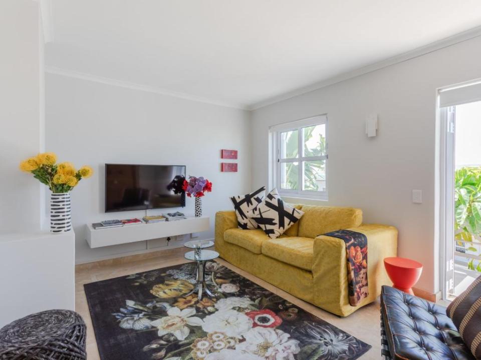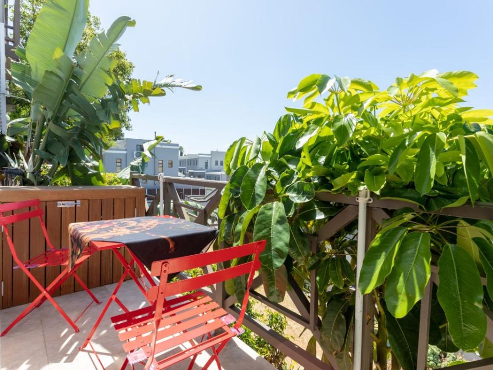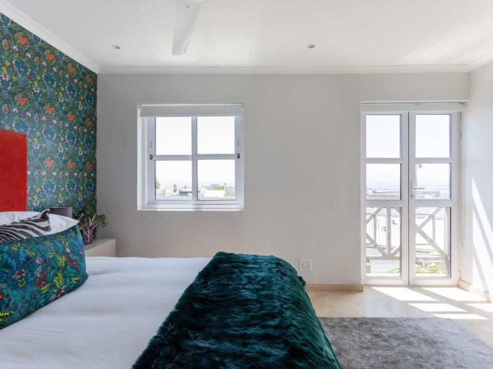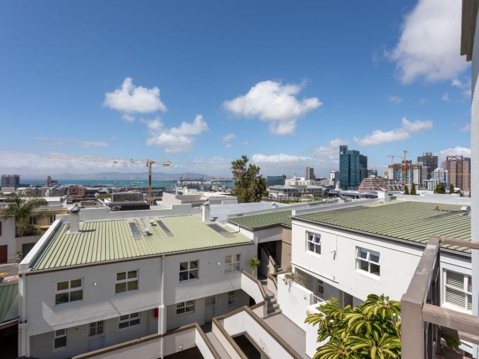 Stunning double-story apartment with beautiful balcony views of the city and harbour as well as Table Mountain. Colourfully decorated and newly renovated with splashes of colour and eclectic styling. The open-plan kitchen, living and dining room are all on the lower level of the apartment. There are 2 bedrooms, a main en-suite and a second bathroom which are all situated on the upper level. The master has a Juliette balcony with views of the city. There is also a third bedroom with a sleeper couch. This space is compact and only suitable for a child. Available on request.