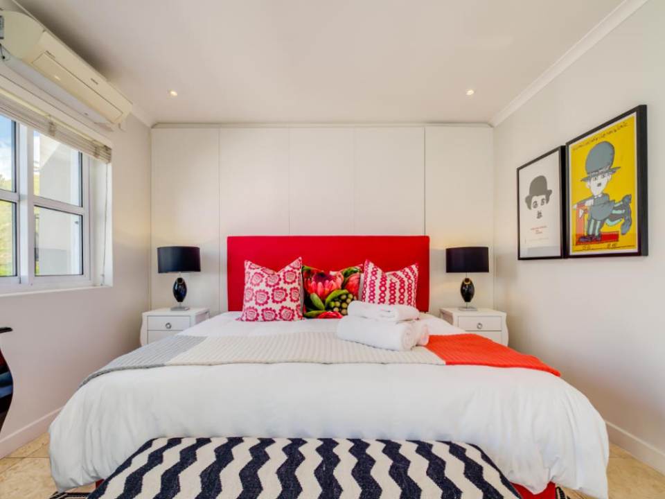 Master bedroom: King bed, en-suite with bath, Juliette balcony with Table Mountain views, air-conditioning.