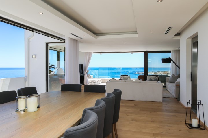 This spectacular modern villa is ideal for a group or a large family, offering 5 bedrooms, a standalone studio (with it’s own kitchen and bathroom), 6 en suite bathrooms, 1 WC, private pool, rooftop Jacuzzi, private lift, secure parking, in addition to breathtaking, panoramic mountain and ocean views.