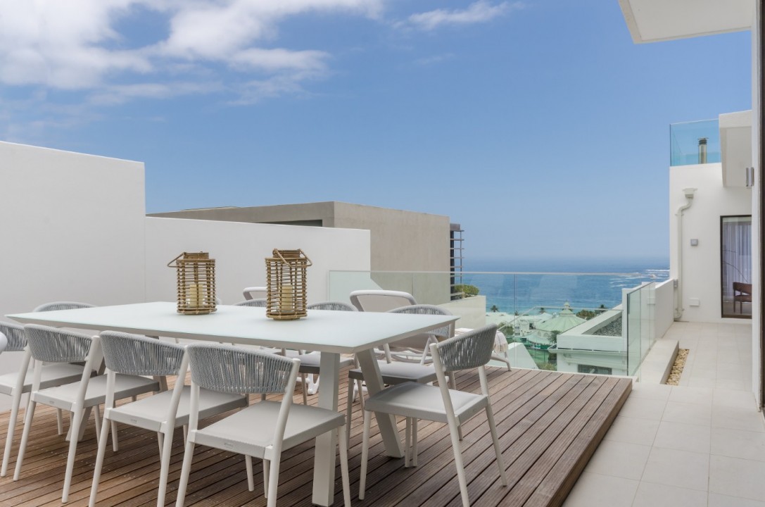 Sit back in your private Jacuzzi and enjoy uninterrupted ocean and mountain views, just a short walk from Cape Town’s beautiful Camps Bay. You will enjoy open, stylish spaces and uninterrupted ocean views from every level of this bright Camps Bay home. This modern villa is fully equipped and includes a private pool and deck area, spacious rooftop garden with a Jacuzzi and a relaxed, sophisticated style throughout the home