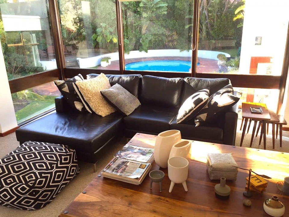 Relaxing and comfortable home for a family or for adults. It is a short 5 minute walk from the beach and 7 minute walk from the Camps Bay strip. All bedrooms look onto pool & garden & have built in cupboards & fresh linen. Open and light, mid-century classic style house, with all the modern conveniences – perfect for a holiday.