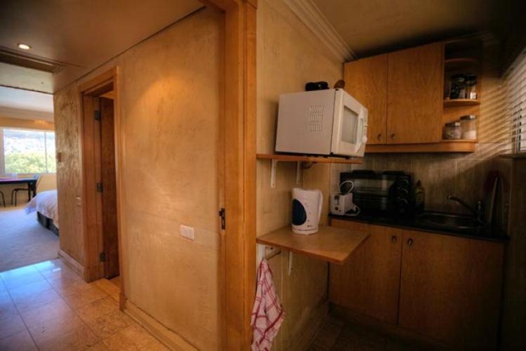 The little apartment is cosy and has a lovely view of the green point stadium. it is equipped with a king size bed, bathroom with bath and shower, table for 2 for dining. and a little kitchen with a hot plate, fridge, sink and microwave. The interiors are tastefully done and all the finishes are slick. Plenty of cupboard space. Apartment offers DSTV, underfloor, heating and housekeeper 3 times a week. This gorgeous bachelor pad is the perfect hideaway for a single person or couple. It is centrally located close to the ocean, V & A Waterfront and fantastic array of restaurants.