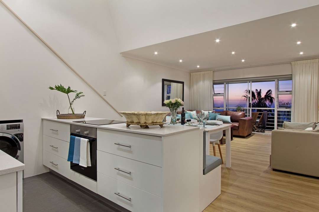 The lounge flows onto the balcony through wall-length glass sliding doors and offers unrivalled Panoramic Atlantic Ocean views.