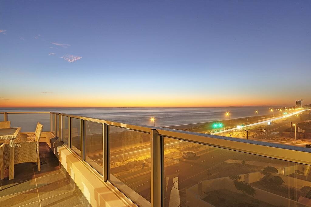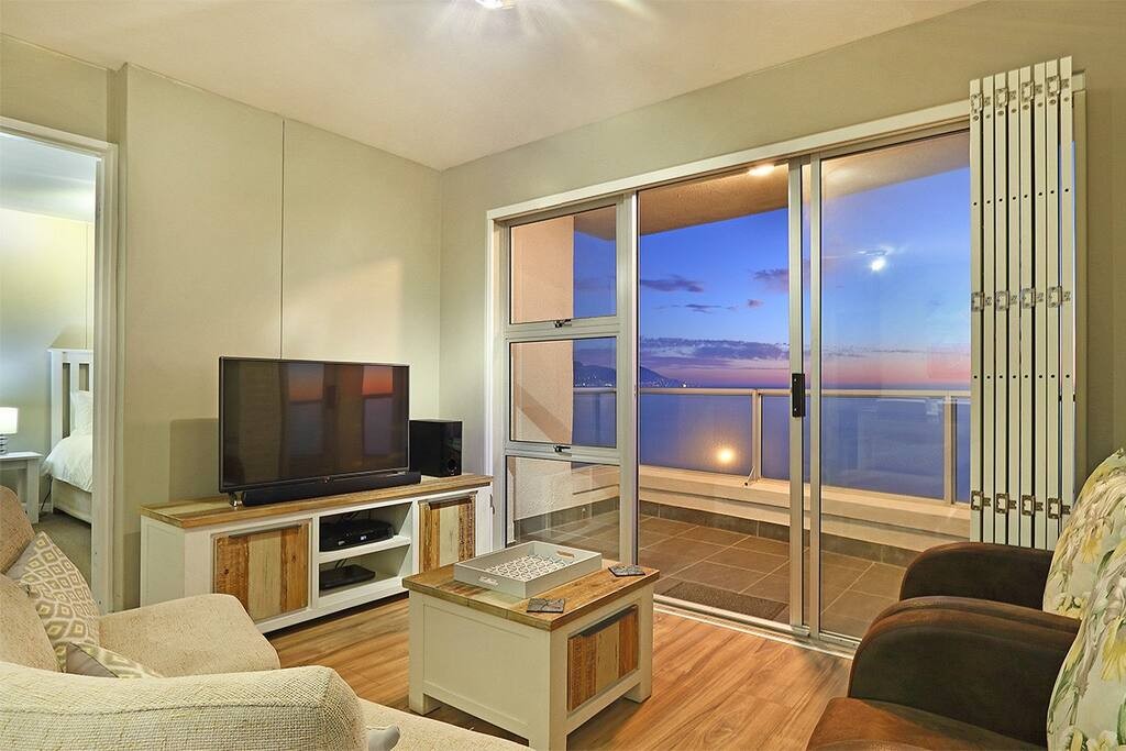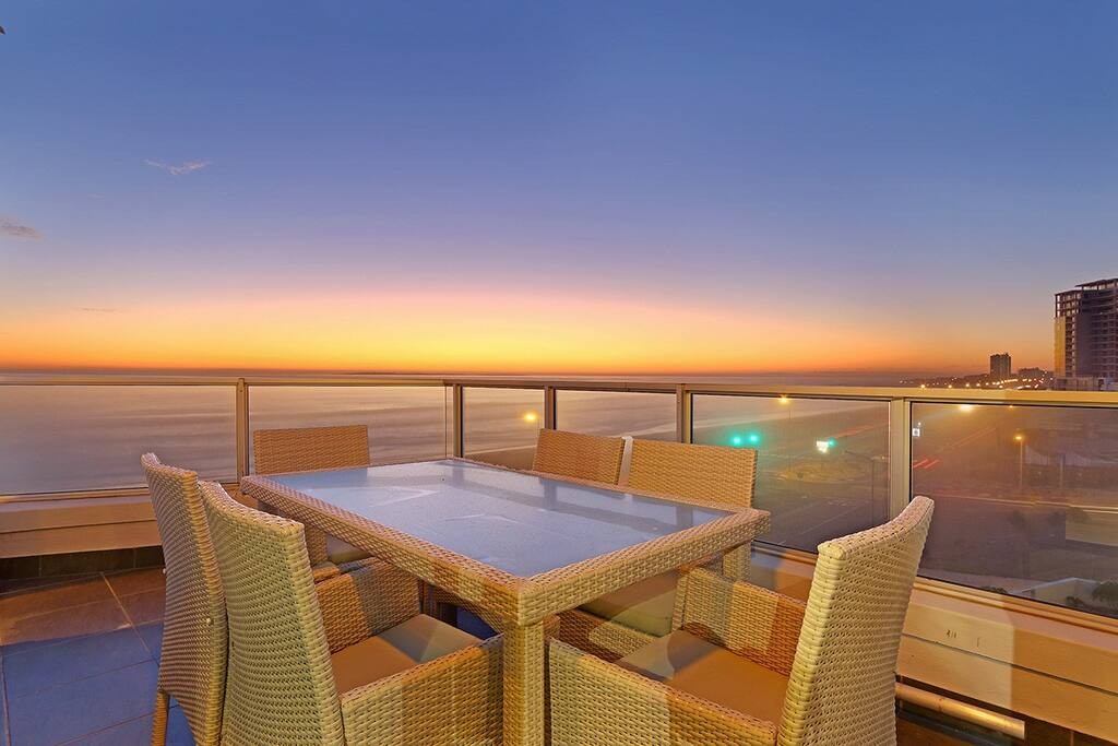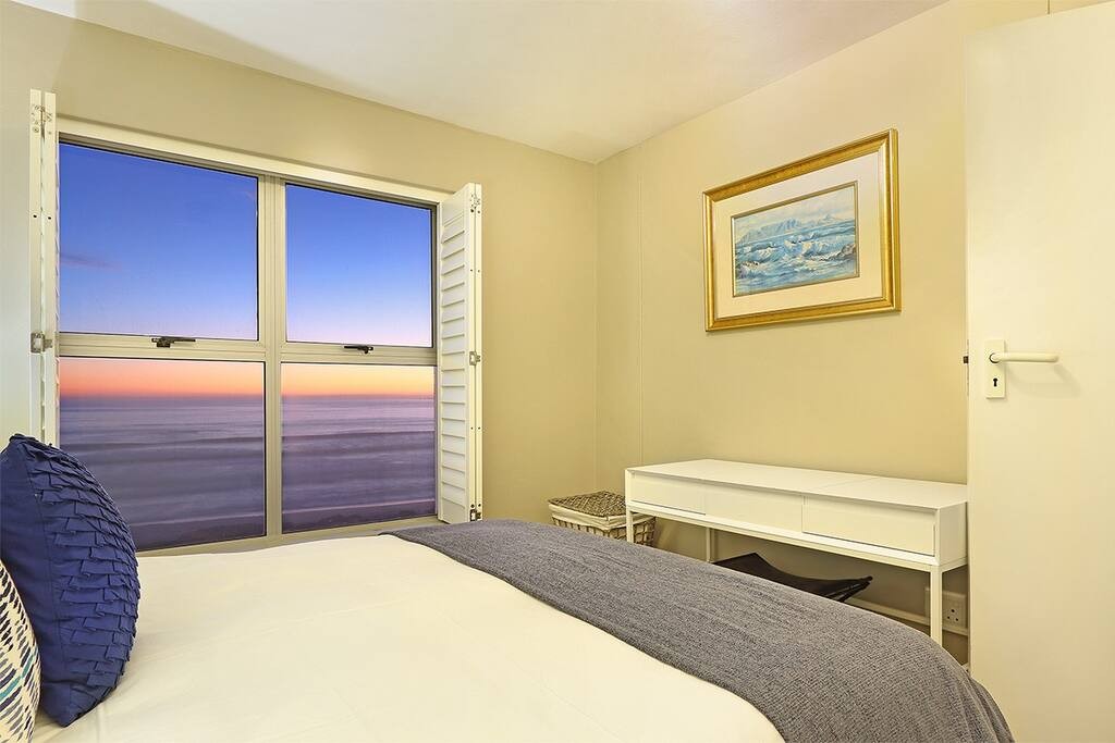The comfortably furnished lounge invites guests to relax in front of a large flat-screen television complemented by a DSTV Explorer decoder or enjoy listening to music on the stereo system. From the lounge, enjoy panoramic views of the ocean courtesy of full-height sliding doors. The sliding doors lead out to the furnished balcony, a place for al fresco dining while taking in breathtaking elevated views of the ocean, Table Mountain in the distance and the area of Table View. Undercover parking is available in a bay as well as an additional parking bay for visitors. The apartment is accessible via stairs as well as an elevator.
