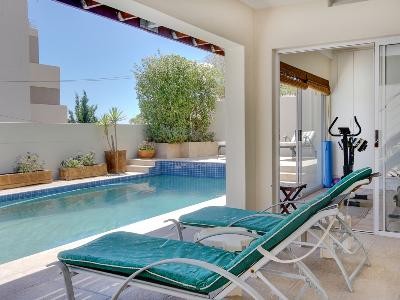 THIS IS A MANAGED HOME RENTAL Designed for those who enjoy entertaining, the main living and dining area is spacious and offers a drinks bar and formal dining for 6 guests. There is a TV lounge where you can catch up on your favourite series, or step outside and enjoy the sunshine while swimming in the pool or tanning on a sun lounger. Outdoor dining for 6 guests is also available. Ideal for a couple or group of friends travelling together, the villa has two bedrooms. The master bedroom offers a King-size bed, en-suite bathroom, TV and doors which lead out onto the balcony. The second bedroom has a double bed and a dedicated bathroom. There are a number of top restaurants and bars close by and the popular promenade is also nearby for those who are keen runners.