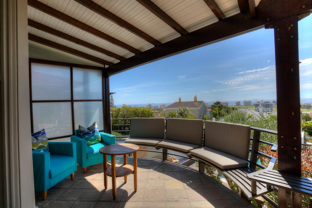 Outside living areas overlook the bay and offer a pool and small garden, perfect for those hot summer days and a fantastic built in braai area. The patio . Deck has cushioned benches with beautiful sea views.
