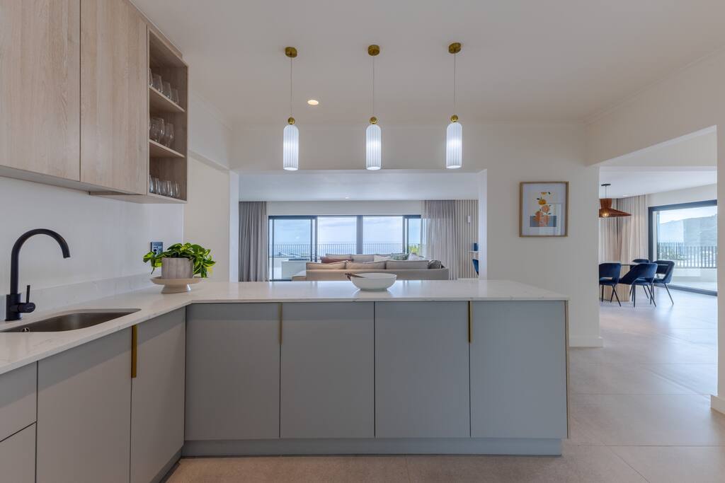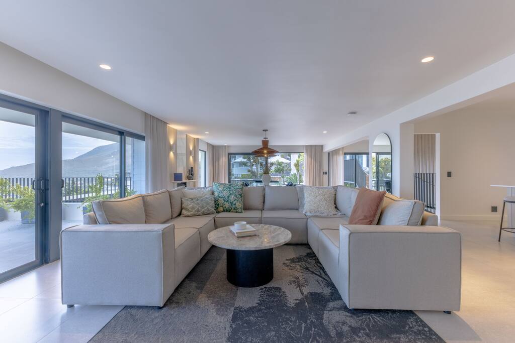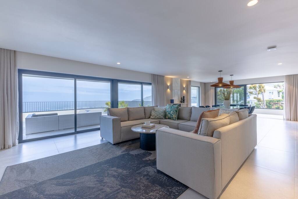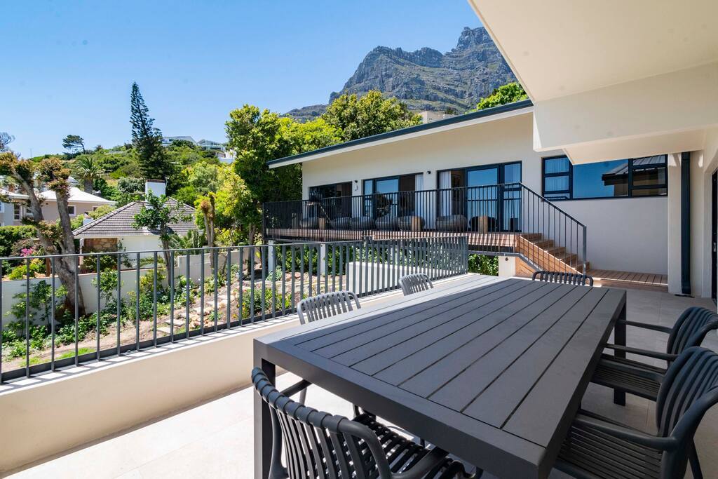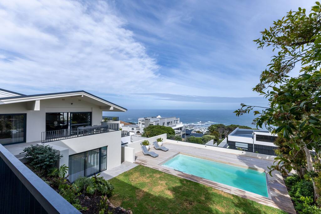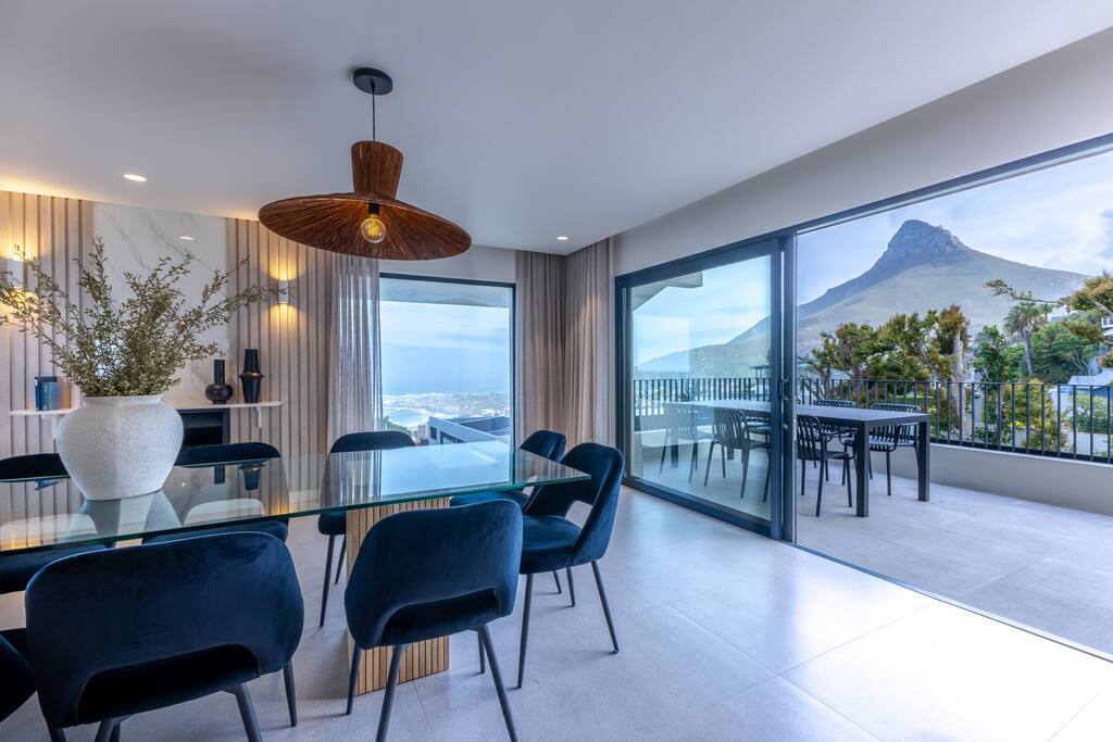 This ultra-modern 5-bedroom villa offers the ultimate Camps Bay experience. Perched in an elevated position, the home showcases panoramic ocean views & views of the famous Table Mountain & Lion’s Head. Designed for seamless indoor-outdoor living, the villa features spacious open-plan interiors and elegant furnishings throughout. The 5th bedroom is a dream setup for kids featuring 2 bunk beds (sleeps 4). An inverter ensures essential power, like lights and Wifi stays on during load-shedding.
