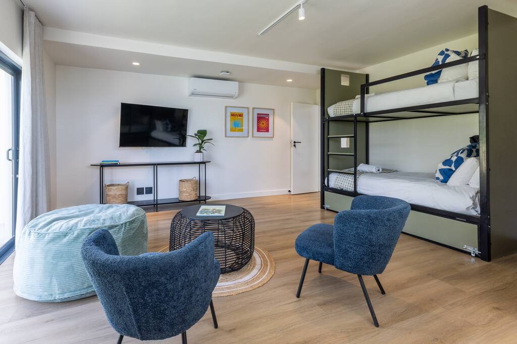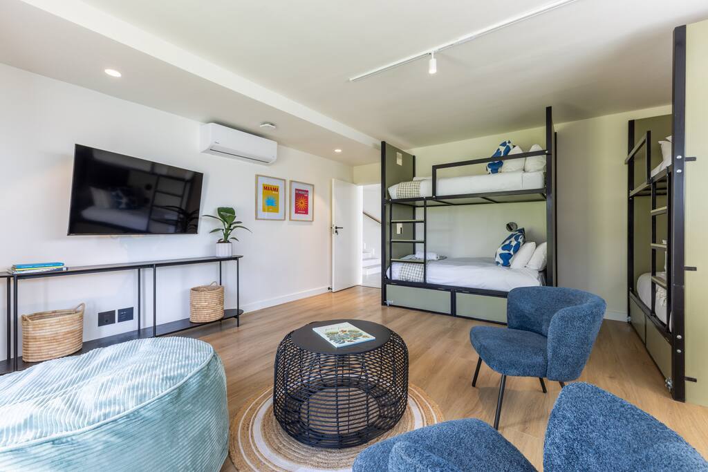 Located on the ground floor with direct access to the pool area, this room has two bunk beds (sleeps 4) and enjoys sea and mountain views. A separate toilet and bathroom are located on this floor for convenience.