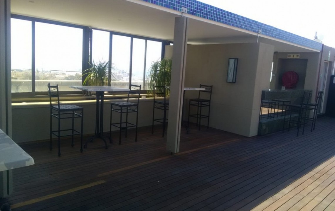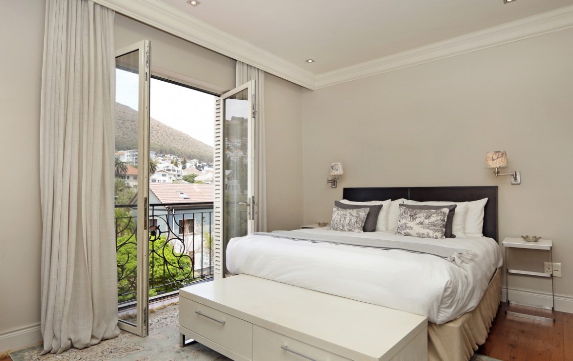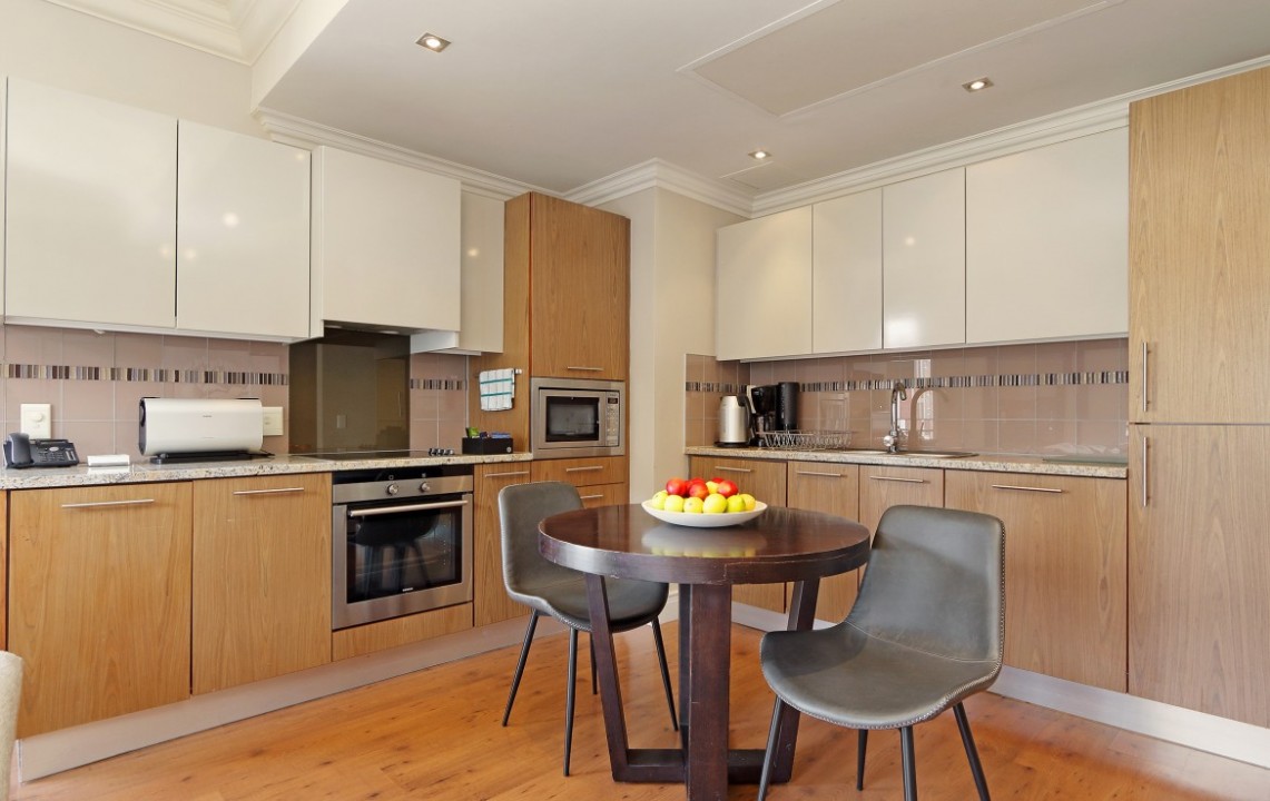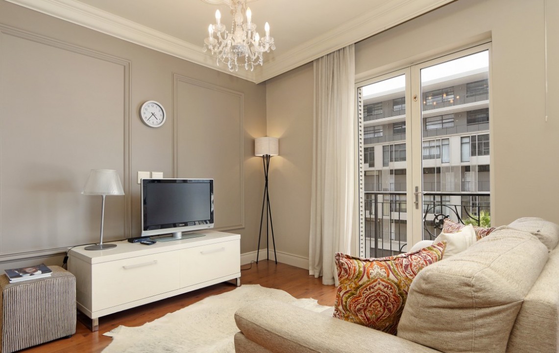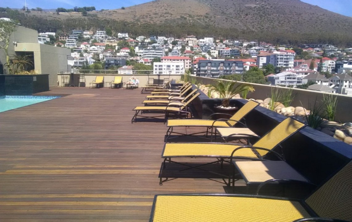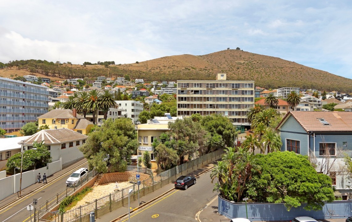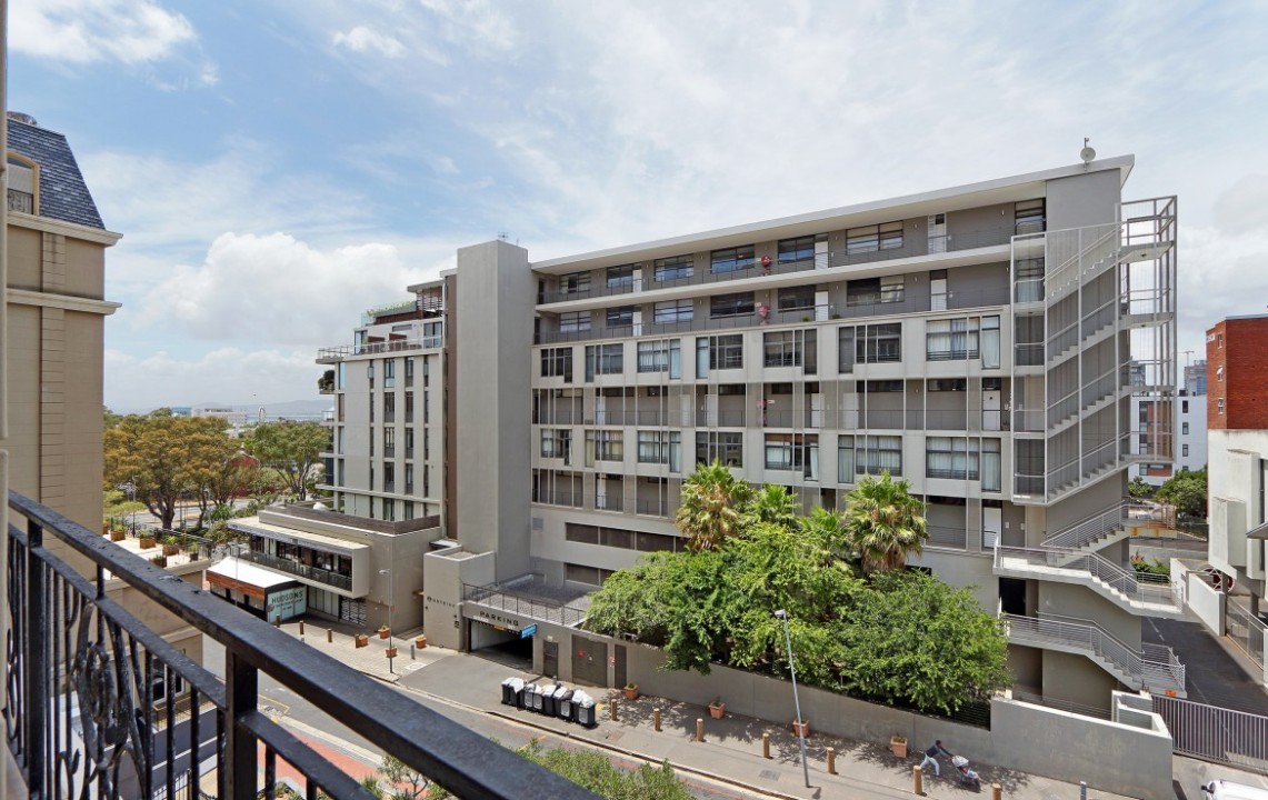 A light and airy apartment, larger than most 1-bedroom units in the building, located on the 5 th floor, this corner unit has views of the waterfront and Signal Hill. Fully equipped, the apartment has a bedroom, which is separate from the lounge area, a dining kitchen area, open plan lounge with Juliette balconies, lots of natural light and is well proportioned. Kitchen appliances include a washing machine, dish washer, microwave oven, stove, coffee machine, kettle and toaster, as well as an air conditioner. Housekeeping and linen change is included 1 x week. Additional housekeeping can be arranged. The apartment offers DSTV and Wi-Fi. Secure parking bay, with lift access.