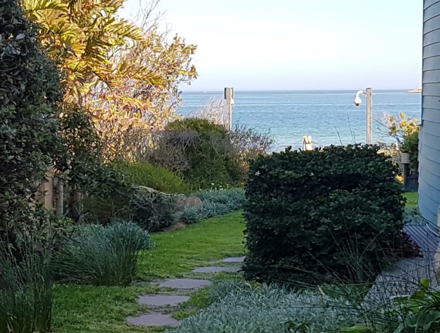 This 2 bedroom apartment (1 Queen and 2 single beds) boasts sea views from the front garden which has outdoor dining furniture. There is 1 bathroom with a shower and toilet and a guest toilet.