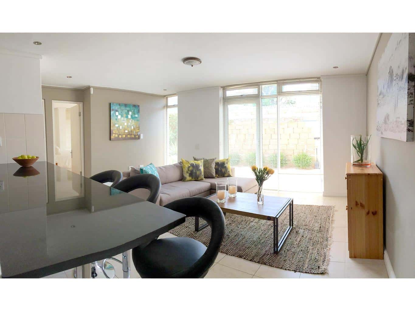 The apartment has 2 bedrooms sleeping 4 guests. The lounge and main bedroom leads to an indigenous garden. Special attention to superb quality bed linen ensures a luxurious and comfortable stay. Secure garage parking for 1 car with elevator access to the apartment.