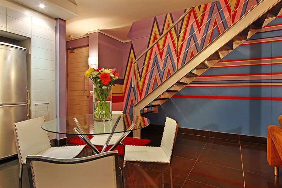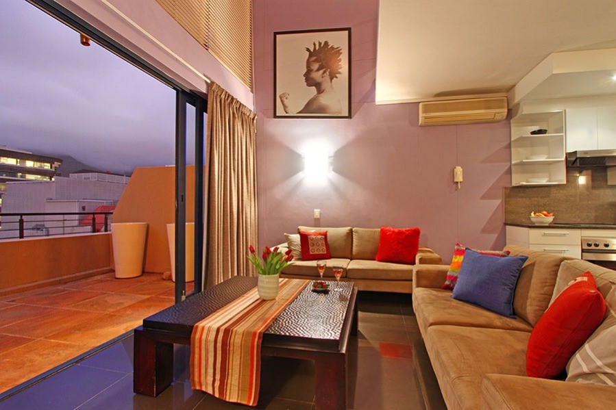 Adderley Terraces J15 apartment is in the heart of Cape Town’s rainbow nation city centre and reflects the bright colours of Africa in its cheerful dynamic decor.