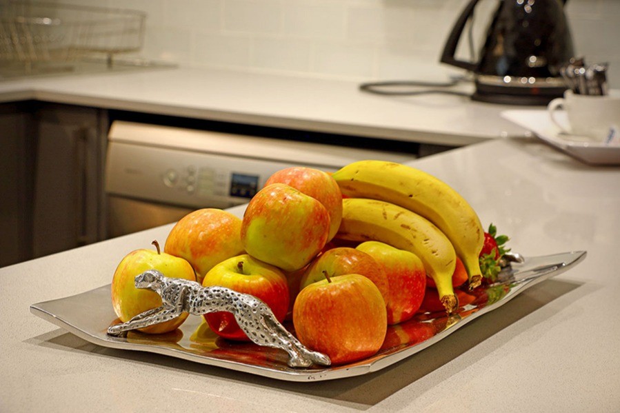 This large ground floor apartment has two bedrooms; one with a queen-size sleigh bed and the other with twin beds, both equipped with quality linens and plenty of cupboard space.