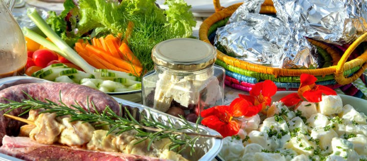 - 2 salads or 1 salad and potato/corn on the cob in foil – subject to what is freshly available