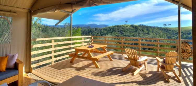 And there it is! AfriCamps bang in the middle of the uber-popular Garden Route. AfriCamps at Ingwe is situated in the Crags, a lush forest and Fynbos area embraced by the coastal town of Plettenberg Bay where you can experience all the Garden Route is so famous for. Our high-elevated tents boast outstanding views of rolling green hill tops surrounded by deep indigenous forested valleys and the Tsitsikamma Mountain Range. Three of the tents now offer a private wood-fired hot tub where you can take in the breathtaking view while listening to the crackle of fire under the African sky. A wood-fired hot tub is the purest form of relaxation and enjoying the outdoors, ideal for those starry winter nights.