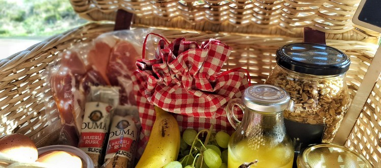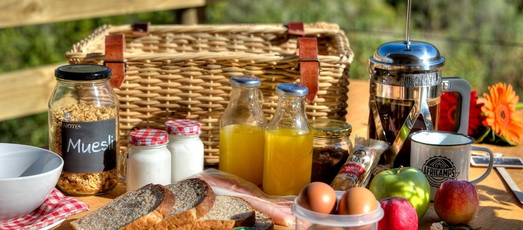 Muesli, Yoghurt, Fresh Eggs, Bacon, Health Bread, Fruit Juice, Ground Coffee, Rusks, Fruit,