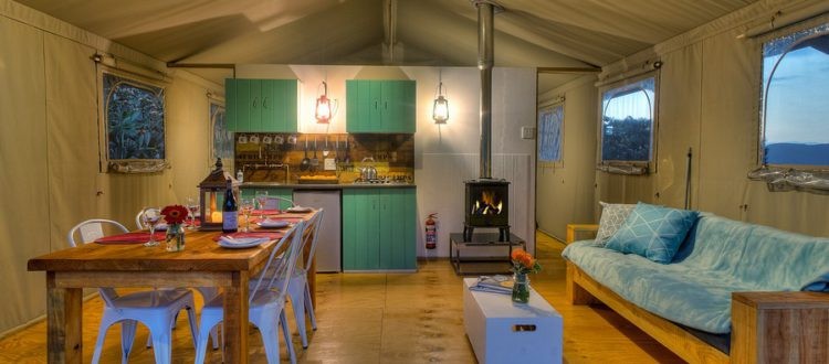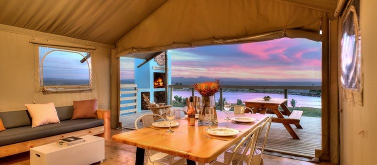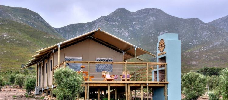 Come indulge in delicious local food and wine at AfriCamps at Stanford Hills. This camp is set on a boutique wine farm in Stanford, an exciting slow food destination with chefs serving an array of fresh and locally produced food. We have 5 glamping tents situated on the foothill of the Klein River Mountain range overlooking a dam and the Stanford Valley. This foodie delight is only a fifteen minute drive from Hermanus and can be reached from Cape Town in two hours.