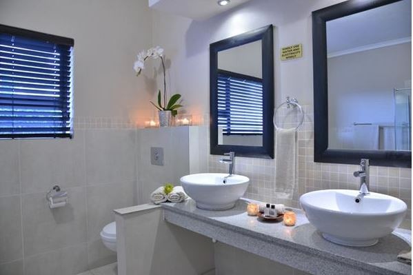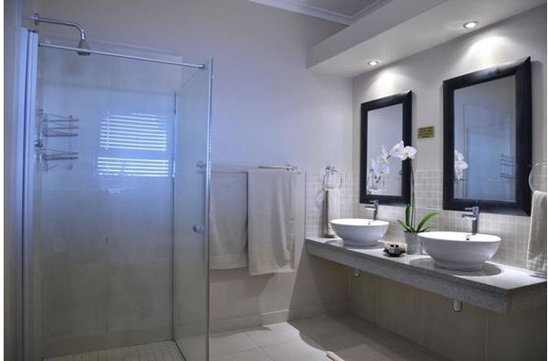 The Giraffe Room and the Serengeti Room are side by side rooms on the ground floor with sliding doors onto the pool area. Both have double beds and TV’s and facilities for making warm drinks. They share a private bathroom with double basins, a shower and bath.