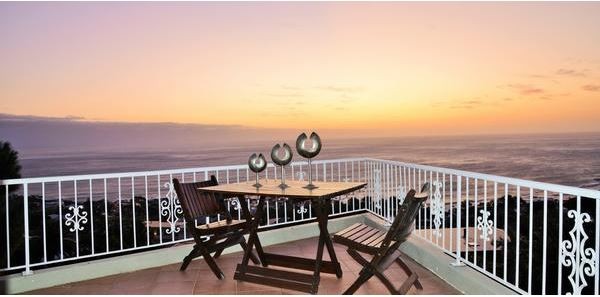 Our Penthouse is on the 3rd and top floor of our guest house and is very spacious with its own private balcony overlooking the pool and has a stunning 180 degree view of the ocean and mountain side. It has a double bed, a TV, a self-service kitchenette and an en suite bathroom with double basins, a shower and bath. It also has an air conditioner for the warmer summer days.
