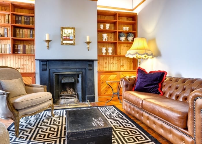 Further down the hallway there is a comfortable lounge area with a study opposite it. The study can accommodate two children on a day bed and a bunk bed. The lounge has a TV with satellite channels and a DVD player plus an iPod docking station. . There is also an original fireplace that works well at warming up the cottage when the winter chill is in the air.