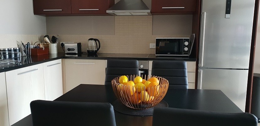 The unit has ample cupboard space, and a large open-plan kitchen, dining and lounge area.