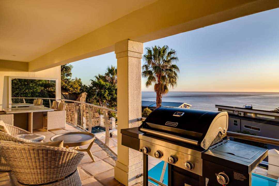This double storey villa has 4 bedrooms and ample space for a group of friends or family. The entrance is on the lower level of the villa where you’ll find the private pool and patio. Inside, there is a pool lounge as well as the fourth bedroom. On the middle level is the main open plan living & dining area which leads onto a wrap-around balcony with gorgeous views of the Atlantic Ocean. The kitchen is modern and open plan. There is also a TV room on this level. On the top floor you’ll find the master en-suite and 2 additional bedrooms which share a bathroom. The master has balcony access and beautiful sea views.