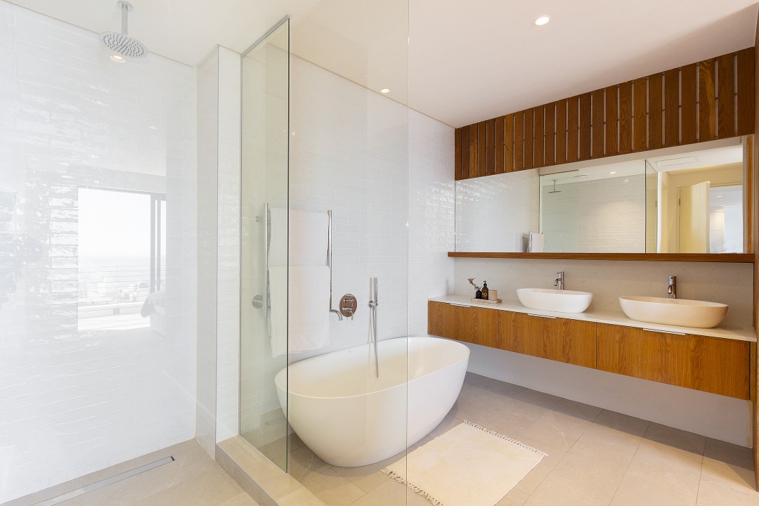 Full open-plan bathroom with underfloor heating and heated towel rail