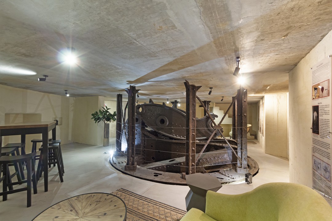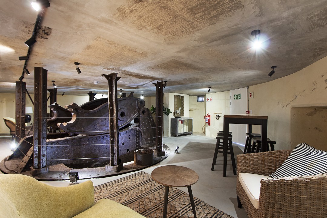 Tunnel network repurposed as an underground wine cellar with dedicated tasting area