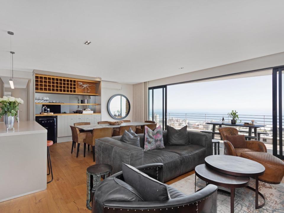 Perched at the foot of Signal Hill, this exquisite penthouse apartment offers breathtaking ocean and sunset views over Sea Point. Stylishly designed with modern elegance and a private rooftop entertainment area and pool.