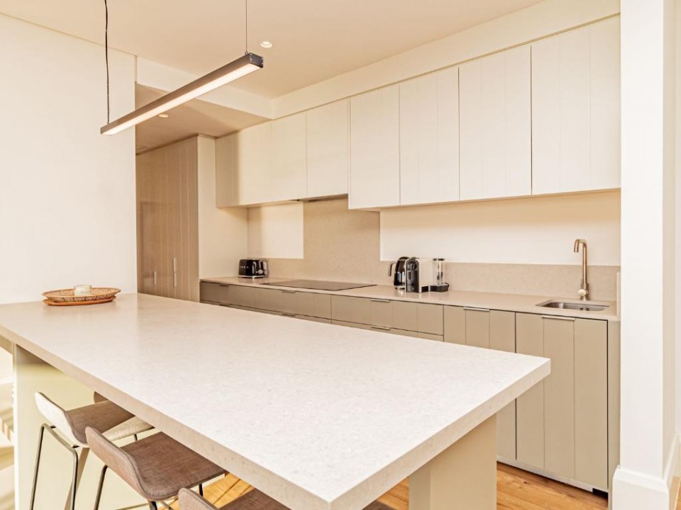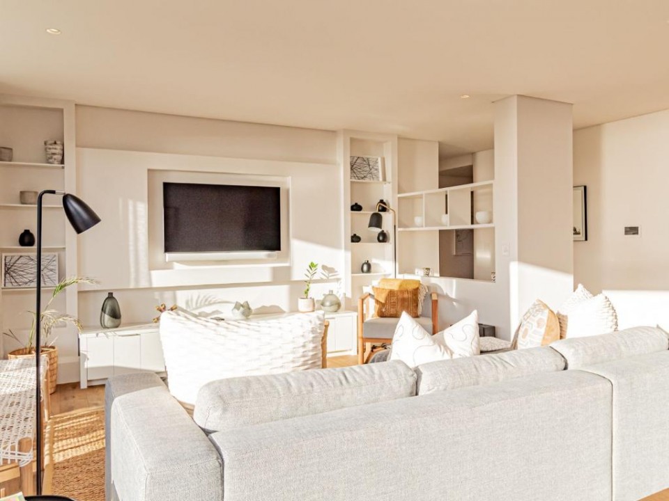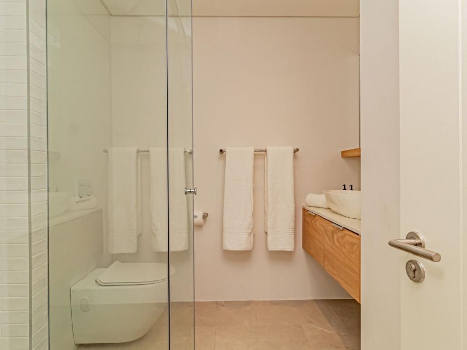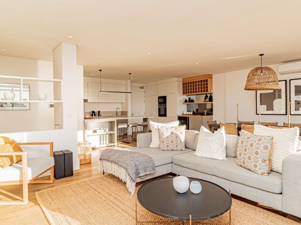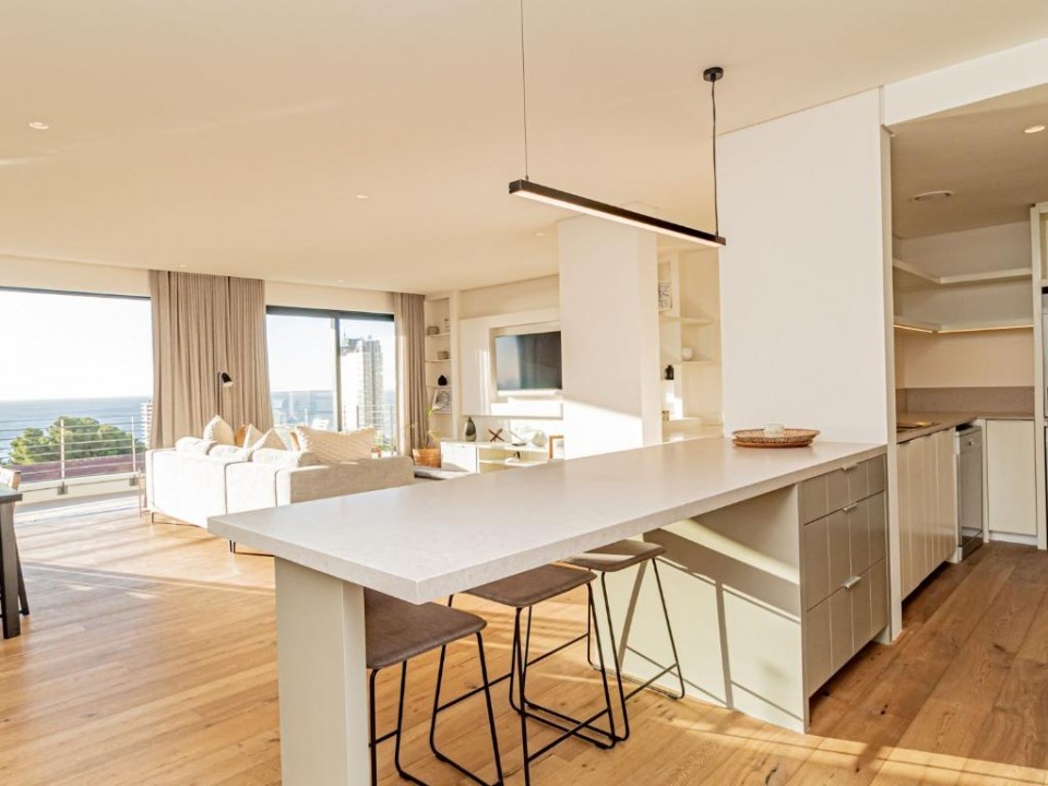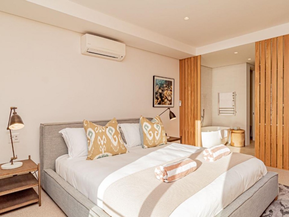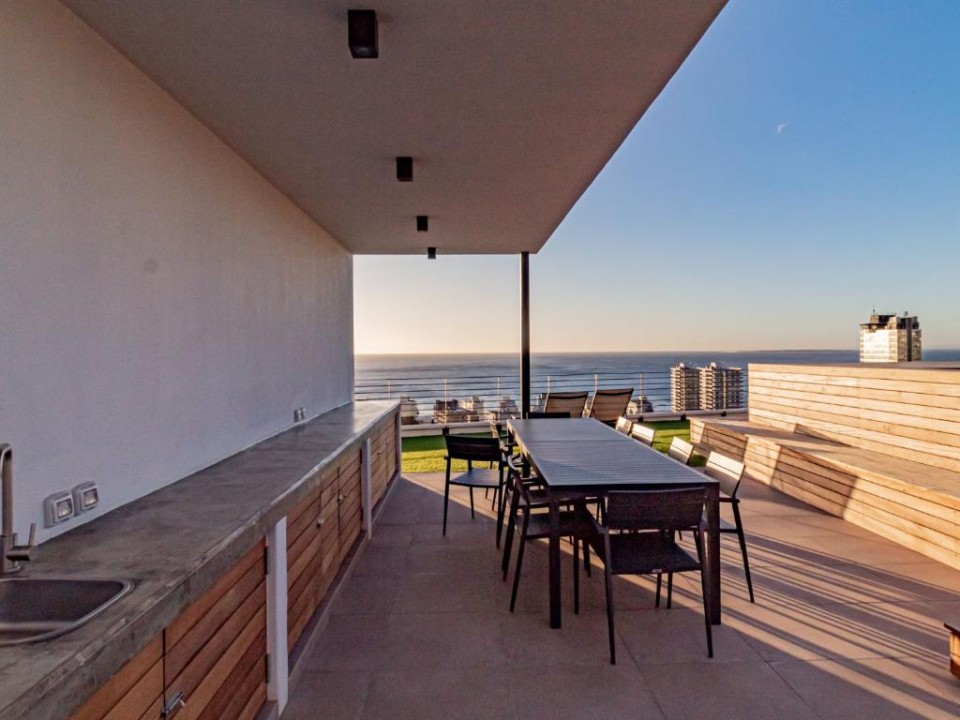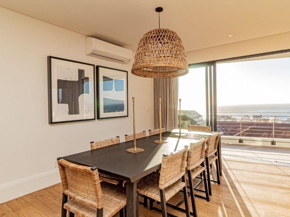 Situated in high up central Sea Point, this modern 2 bedroom, 2 bathroom apartment has a private balcony with uninterrupted sea views. The modern living and dining areas are open plan to the kitchen, which is fully equipped with SMEG appliances and a Nespresso machine. The private balcony, which is accessed from the lounge via sliding doors has seating for 4 and a gas BBQ to enjoy the sunsets. Down a short corridor, past a laptop-friendly work station, are the 2 bedrooms and 2 bathrooms. The master has a juliette balcony, with lovely sea views and a full open plan bathroom. The second bedroom also has a juliette balcony with looks towards the mountain, with a side view of Lion’s Head. The second bathroom is separate and doubles up as a guest loo. On the fourth floor of the block, there is a communal outdoor swimming pool and entertainment area open for guests to enjoy. There is secure parking available inside the apartment block, along with lift access to the apartment.