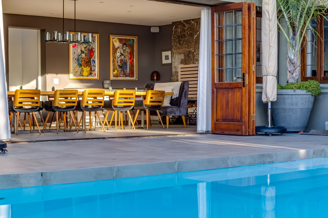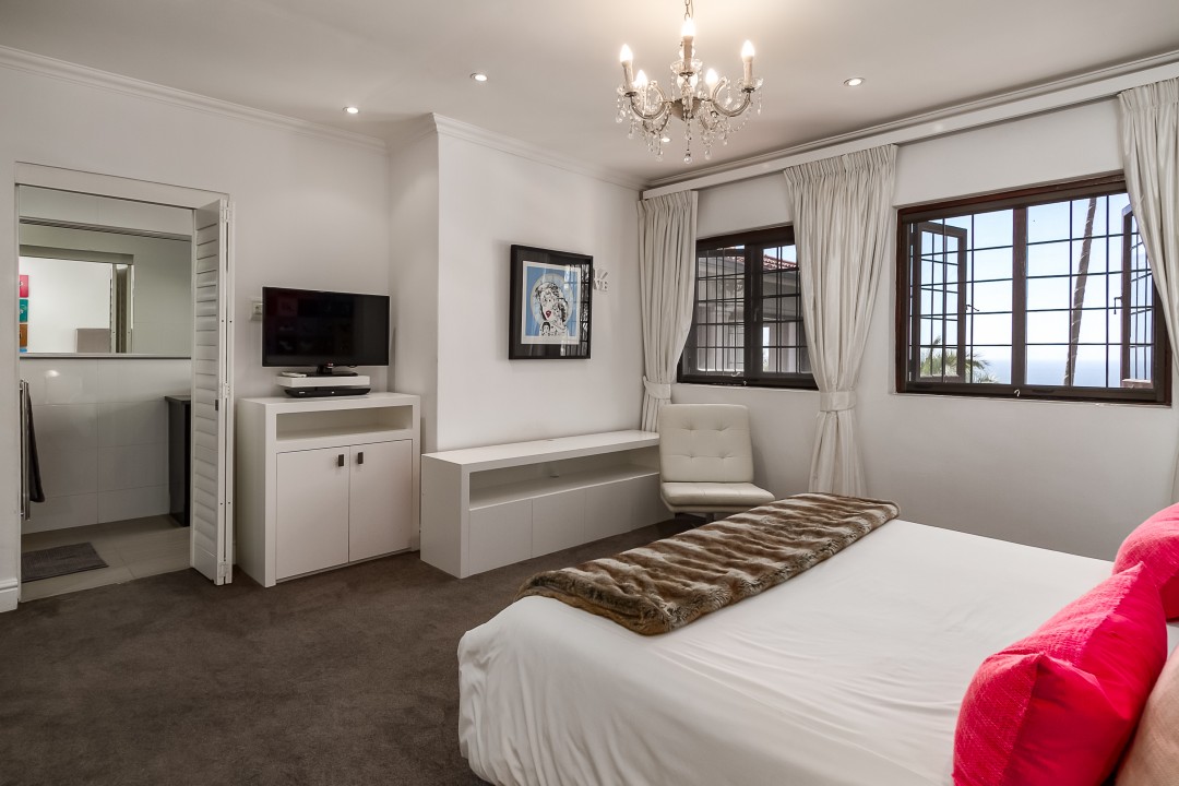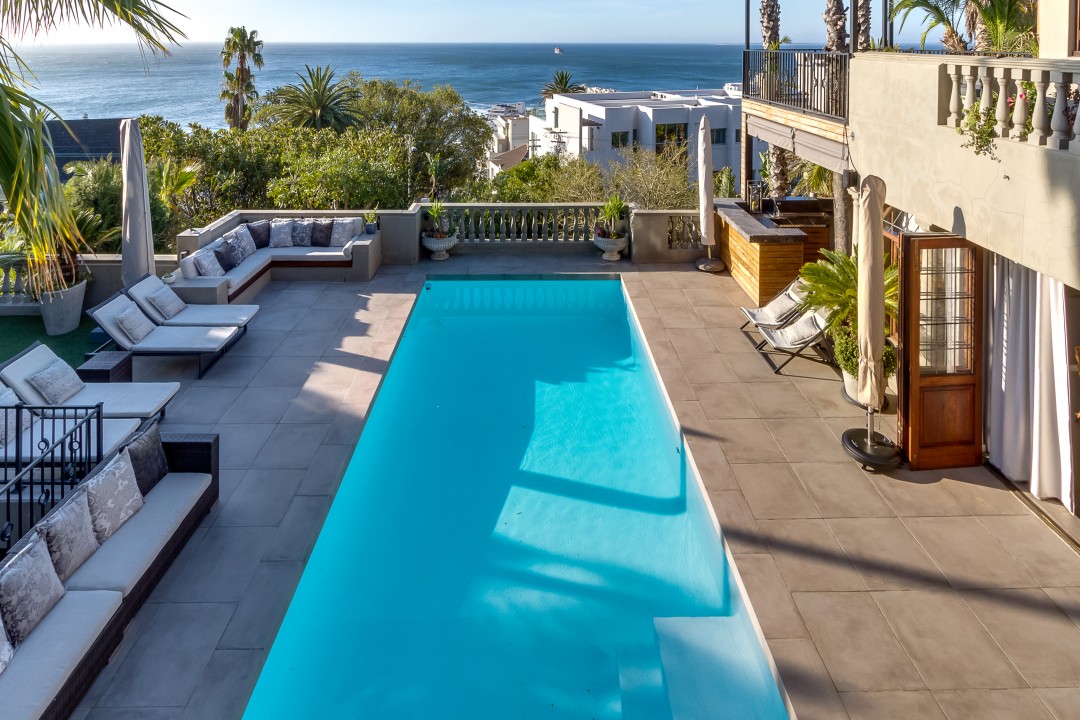 This magnificent 6 bedroom villa, situated in the gorgeous, wind-sheltered suburb of Bantry Bay, is an entertainers dream. With a fully-equipped kitchen that opens up onto a spacious garden with pool, two large dining areas, three indoor fireplaces, and stunning ocean views, this villa is where you want to be when winding down with family and friends.