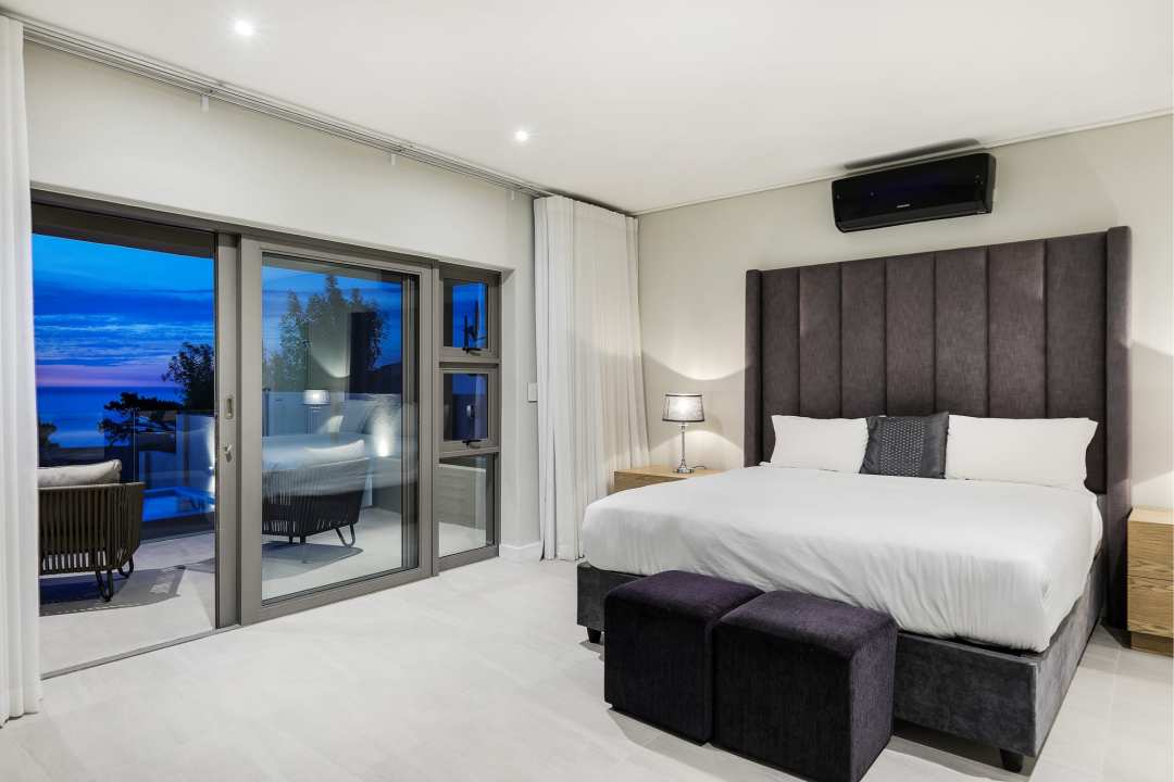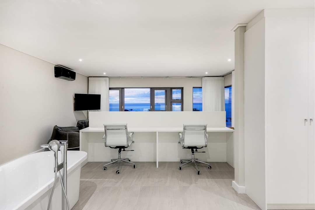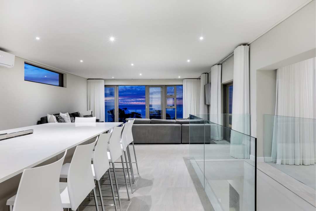 Every detail of this multi-level Camps Bay retreat has been curated for relaxation and connection. Expansive open-plan living and dining spaces feature plush seating for nine, a dining table for fourteen, and seamless flow onto the sunlit deck overlooking the ocean. A dedicated bar area, gas fireplace, and fully equipped kitchen with gas hob, Nespresso machine, and breakfast bar for eight make entertaining effortless. A separate laundry room, double garage, and full alarm system add to the villa’s convenience and peace of mind.