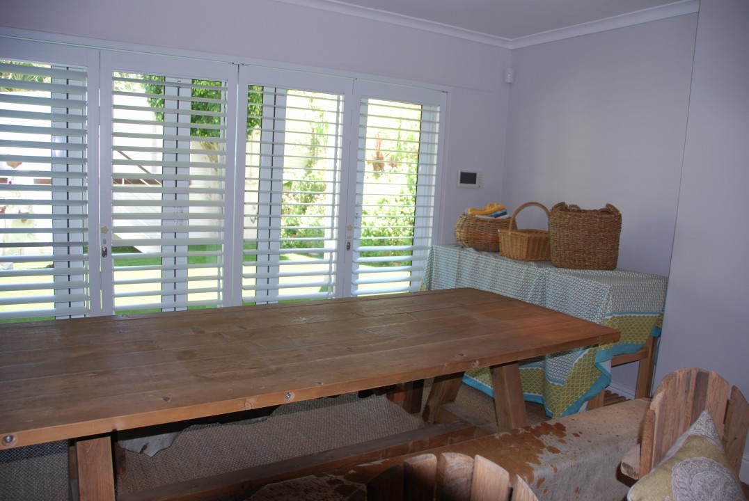 - Living area opens onto an outside patio with furniture, pool and braai/barbeque area