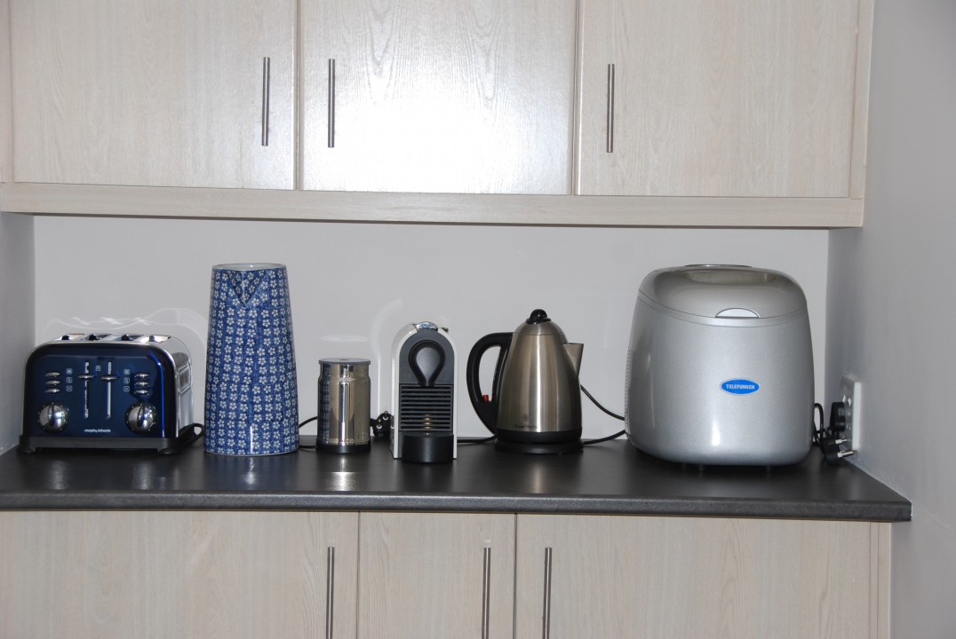 - Kitchenette with microwave, stove, oven, 2 fridges, freezer and appliances
