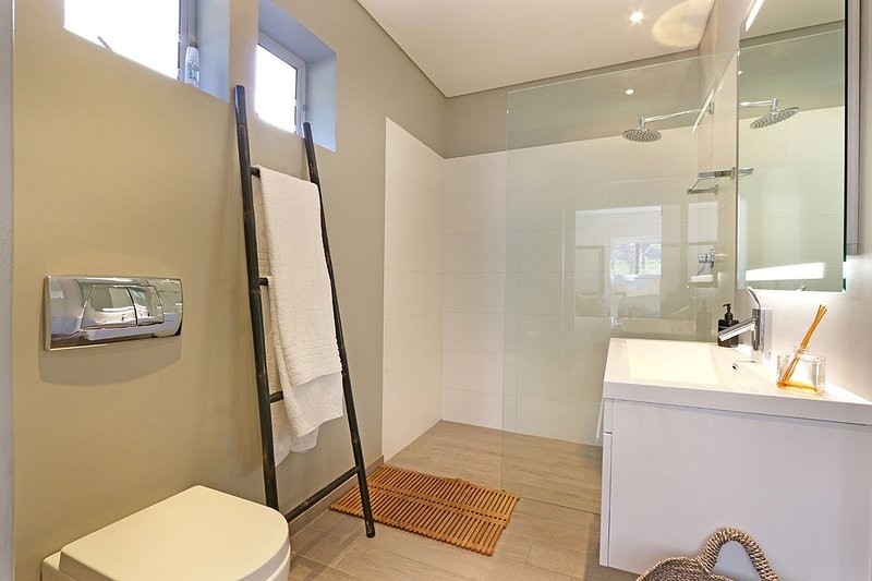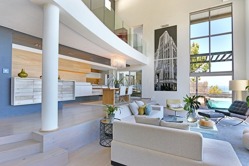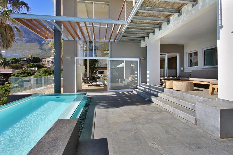 There are 2 large lounge areas , a bar area, dinning area and 2 stunning outdoor decks, one with a jaw dropping rim flow glass pool that looks toward the beach , Lions head and Table mountain. There is an outdoor bar and gas barbecue with , sun lounges and plenty of outdoor seating , all overlooking the majestic views. There is drive in access from the road.