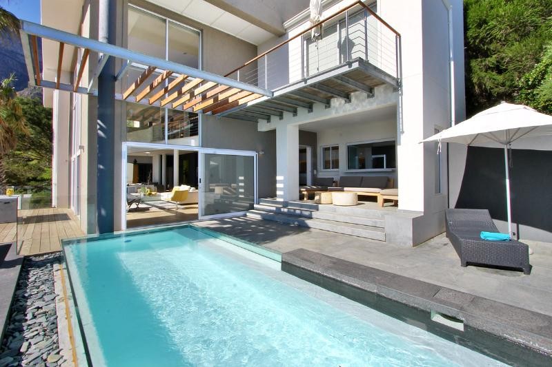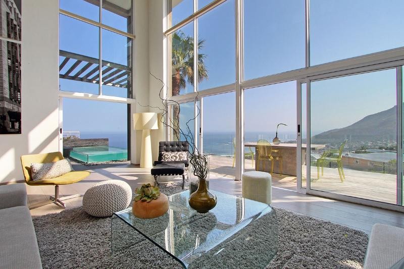 This luxury penthouse villa is situated in upper Camps Bay close to the nature reserve with its beautiful scenery and walks just a breath away. A more spectacular position and property will be hard to find with the mountain behind the property and the sea in front. It has unrivalled views of Camps Bay Beach, Lions Head and Table mountain. The property is contemporary in design with luxury top end furnishings and fittings .