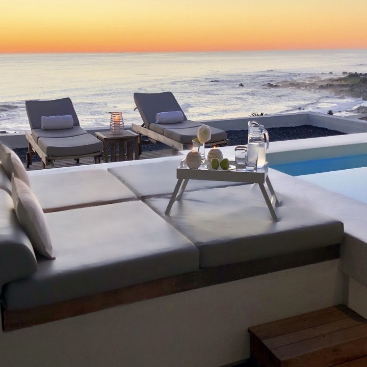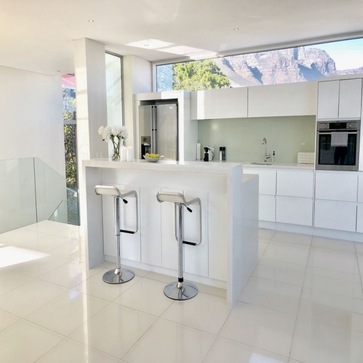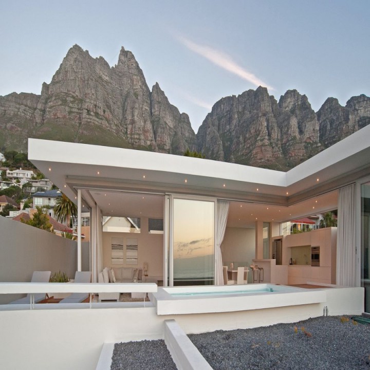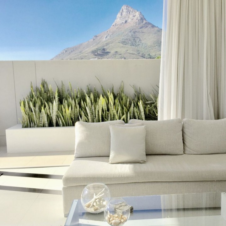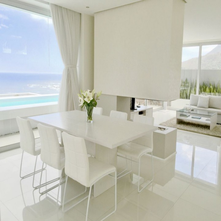 Set on the slopes of Table Mountain, Aquatic Villa provides exceptional views of the sea, beach and mountains from all three levels. The interior is modern with clean lines and calming, sea inspired tones and decor. The extensive outdoor entertainment areas and viewing terraces are comfortably furnished with sofas, daybeds and loungers for gazing at the blue Atlantic or enjoying a sundowner with friends.