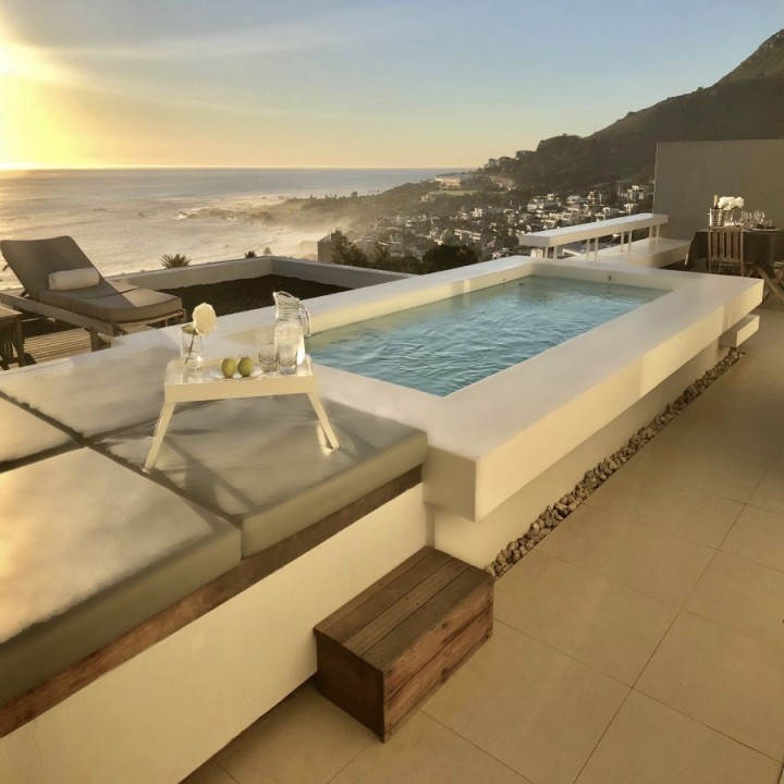 Aquatic Villa is ideally located in a quiet area of Camps Bay, yet less than 10 minutes walk to the famous beach with its stylish restaurants and bars, and a 10 minute drive to downtown Cape Town and V&A Waterfront. Take an invigorating swim in the large 10X4m pool or workout in the sea facing gym on the property. The villa has five spacious en-suite double bedrooms and can be rented as a whole, or separately as a 3 bedroom house or 2 bedroom penthouse, each with private pool and keyed lift access.