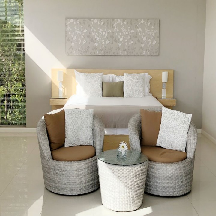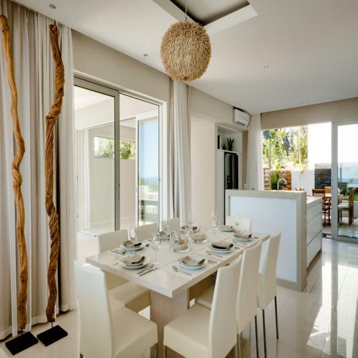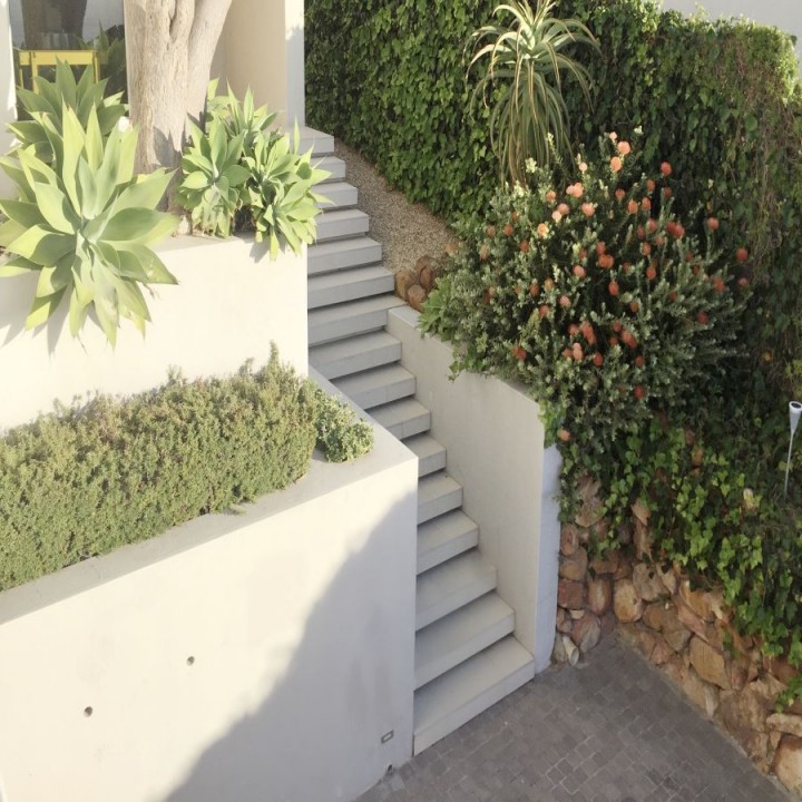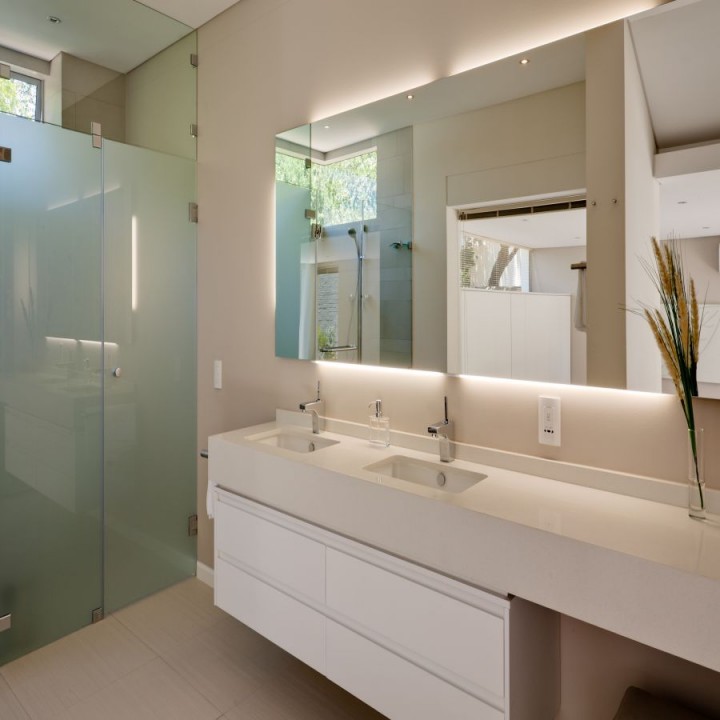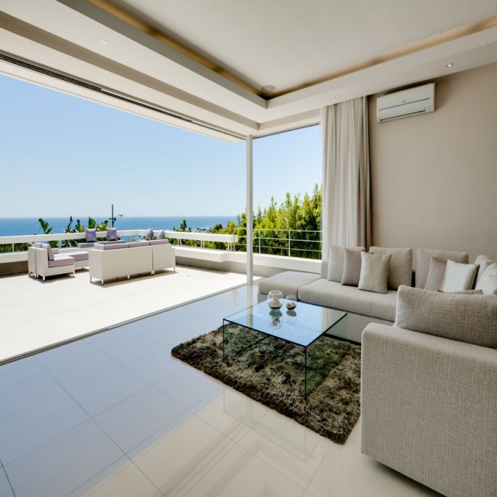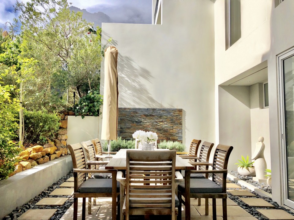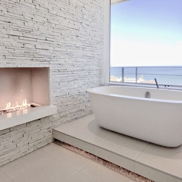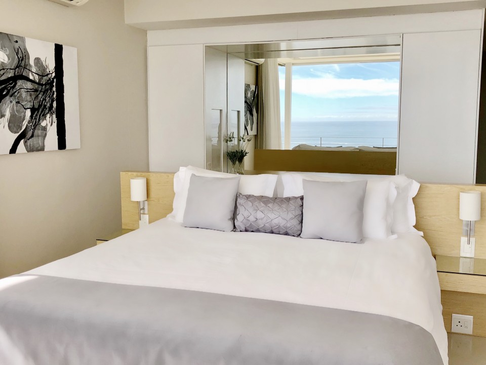 Set on the slopes of Table Mountain, Aquatic Villa provides exceptional views of the sea, beach and mountains from all three levels. The interior is modern with clean lines and calming, sea inspired tones and decor. The extensive outdoor entertainment areas and viewing terraces are comfortably furnished with sofas, daybeds and loungers for gazing at the blue Atlantic or enjoying a sundowner with friends. Aquatic Villa is ideally located in a quiet area of Camps Bay, yet less than 10 minutes walk to the famous beach with its stylish restaurants and bars, and a 10 minute drive to downtown Cape Town and V&A Waterfront. Take an invigorating swim in the large 10X4m pool or workout in the sea facing gym on the property. The villa has five spacious en-suite double bedrooms and can be rented as a whole, or separately as a 3 bedroom house or 2 bedroom penthouse, each with private pool and keyed lift access.