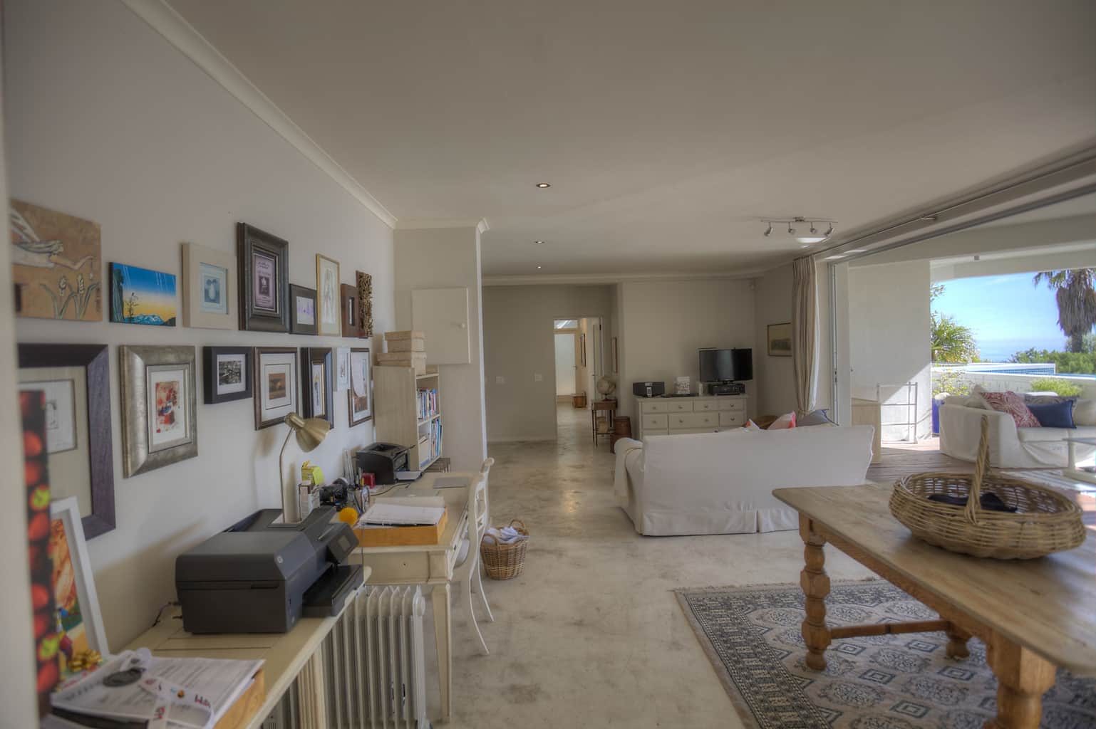 Downstairs the open plan living room (also with marvelous views) leads from the kitchen to a large outside deck furnished comfortably with sofas and onto the pool and small well-maintained garden. (The pool is raised off the ground making it slightly less dangerous for adventurous children.)
