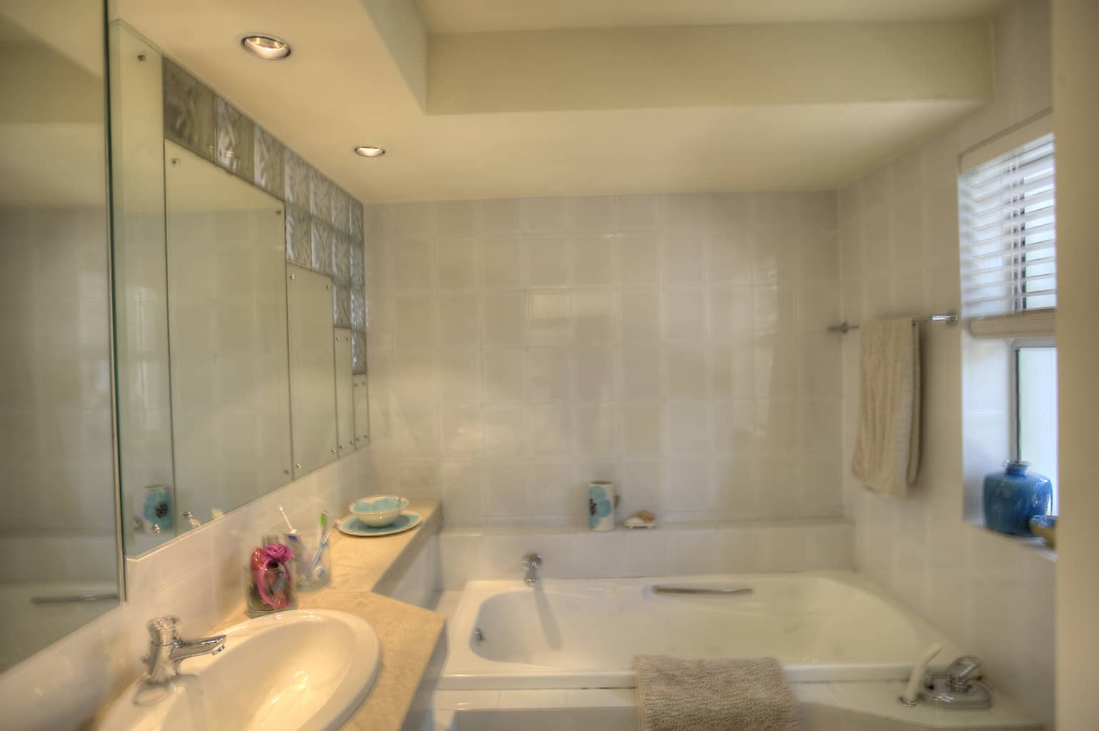 Kitchens: The main kitchen upstairs has a double fridge with ice maker, wine fridge, microwave and a gas hob/electric oven combination and, once again, gorgeous views to make cooking and entertaining a breeze. Sliding doors open up to a deck where breakfasts can be shared. Downstairs also enjoys a kitchen with a large fridge and oven, which is perfect for entertaining outside at the poolside.