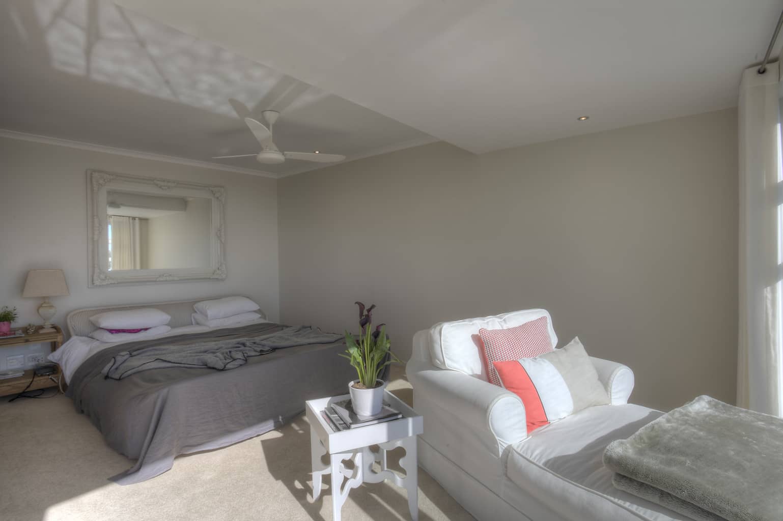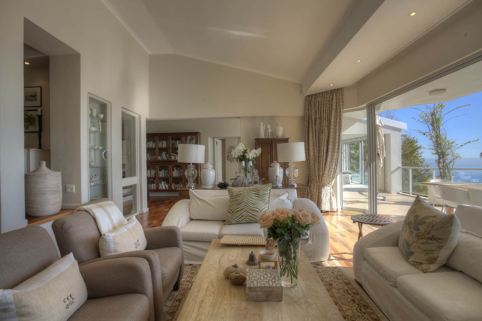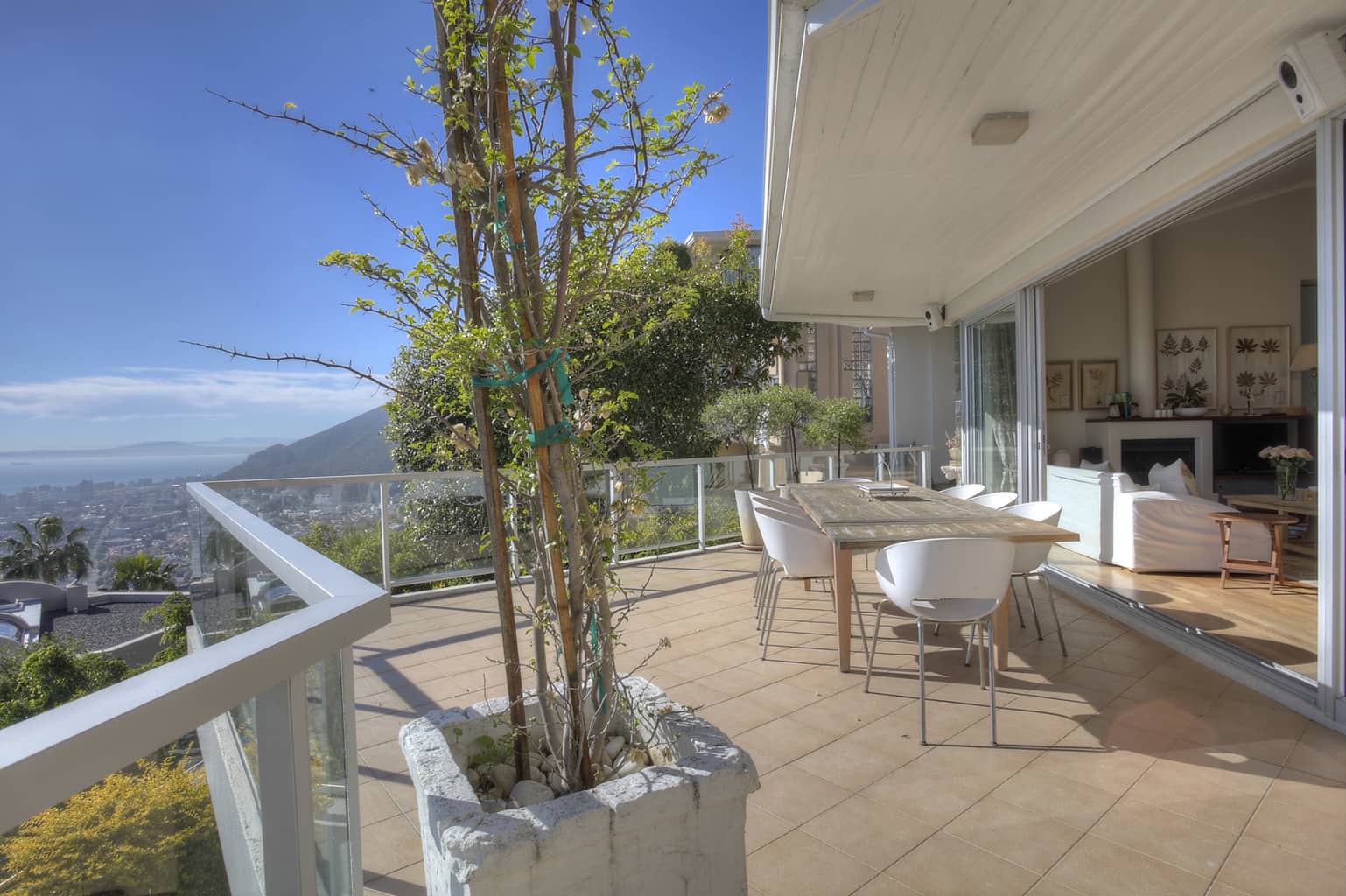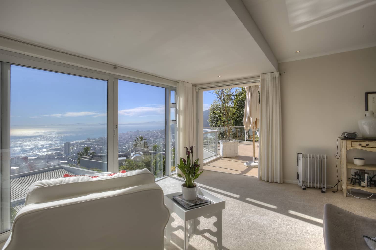 Set high on the slopes of Lions Head in a quiet cul de sac, Number 3 Arcadia Close enjoys panoramic views over Robben Island and Table Bay. The house is simply, yet stylishly, furnished in tones of whites and creams to enhance the beauty of the spectacular sea views.
