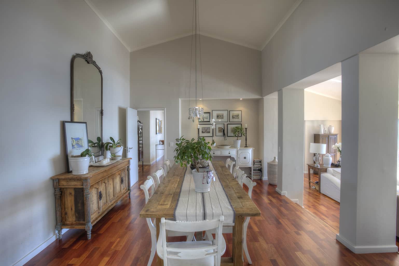 Both the upstairs and downstairs living rooms have flat-screen television sets, DSTV’s full bouquet of programmes, Apple docking stations, DVD players are wired for surround sound.