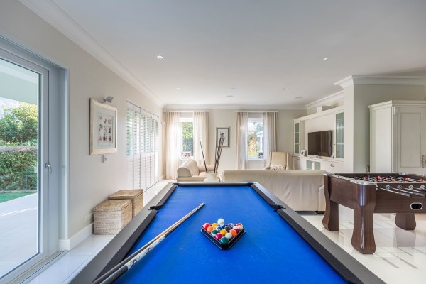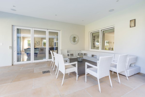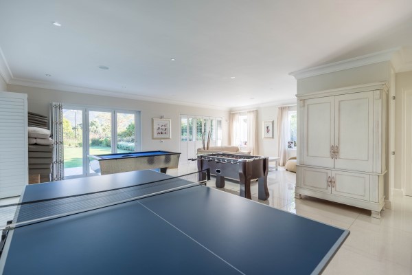 The large open verandahs and terraces surround four of the living areas and three bedrooms enjoy expansive mountain views overlooking the pool deck. The interior decoration is light and airy with neutral tones and sleek modern finishes. The second entertainment lounge features satellite TV, pool table, table tennis table and surround sound piped throughout the house inside and out. Two of the living rooms (one on either side of the outdoor swimming pool) make it ideal for families or friends sharing, especially if they have children.