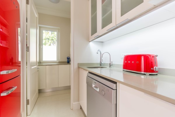 Kitchen 3 with air conditioner, tiled floors, breakfast nook, dishwasher, extractor fan, fridge, gas, hob, in-situ coffee machine, kitchen-diner, microwave, oven and hob, stove, tumble dryer and washing machine